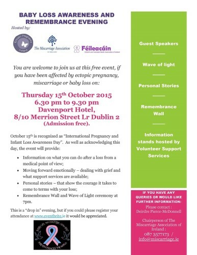 International Pregnancy and Infant Loss Awareness Day and this yr Ectopic Pregnancy Republic of ireland, the Miscarriage Association of Ireland and Feileacain are hosting the first Baby Loss Sensation and Remembrance Evening in Republic of ireland. Information technology takes place tonight from 6.30pm to 9.30pm in the Davenport Hotel, Merrion Street, Dublin.